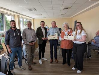 Die Geehrten Frau Franziska Braun und Herr Alois Winter mit Ortsvorsteherin Nadine Kaster, Bürgermeister Joshua Pawlak, Kreistagsmitglied Reiner Petry und stellv. Ortsvorsteher Timo Kowalik