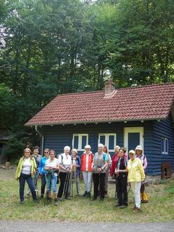 Unser Foto zeigt einen Teil unserer Wandergruppe an einer schön gelegenen Waldhütte unweit von Türkismühle.