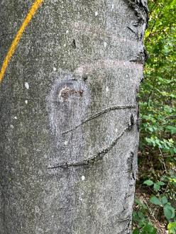 Verschiedene Buchen platzen an der Rinde auf und fangen an zu "bluten"!