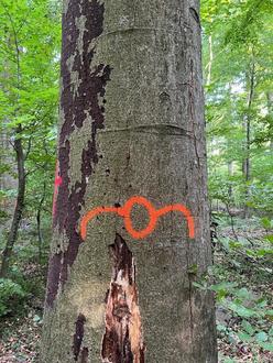 Verschiedene Bäume wurden wie folgt markiert und werden als Biotop- oder Habitatbäume stehen bleiben.
