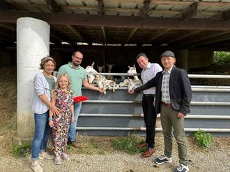 Bürgermeister Joshua Pawlak und Ortsvorsteher Michael Engel besuchten vorab den Betrieb und probierten den leckeren Käse, den es ab sofort auch zu kaufen gibt. Das Verkaufsnetz wird derzeit Schritt für Schritt ausgebaut.