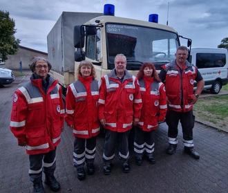 Unsere 5 Aktiven vor einem Einsatzfahrzeug unseres Kreisverbandes