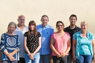 Hintere Reihe von links nach rechts: Mario Zerfass (Kassierer), Markus Weides (Beisitzer), Marco Walter (1. Vorsitzender) Vordere Reihe von links nach rechts: Beate Welsch (Beisitzerin), Jasmin Blaß-Priester (Schriftführerin), Alina-Marie Jahn (2. Vorsitzende), Elke Jungmann (Beisitzerin)