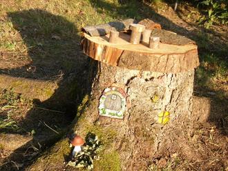 Auch Wichtel- und Feen-Häuschen wurden in und auf Baumstümpfen gefertigt (unser Foto 1).