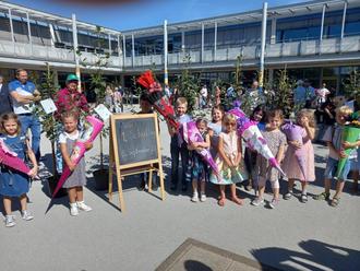 Mittlerweile ist es ein schöner Brauch geworden. Die beiden Obst- und Gartenbauvereine Rehlingen und Fremersdorf – unterstützt durch den Schulförderverein der Grundschule Rehlingen – schenken zum Schulanfang in jedem Jahr den ABC-Schützen einen Apfelbaum. Auch in diesem Jahr wurden insgesamt 49 Obstbäume an die Kinder aus Eimersdorf, Fremersdorf und Rehlingen übergeben.