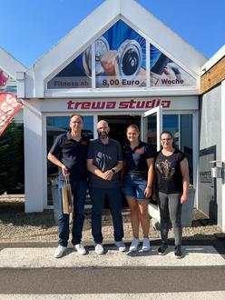 V.l.n.r. Geschäftsführer Trewa Insel und Studio Thomas Walter, 1. Beigeordneter Maik Licher, Claire Walter und Geschäftsführerin Trewa Bowling Christina Trenz
