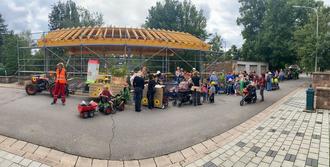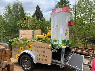 Mehr als 50 Personen waren dem gemeinsamen Aufruf von Kindergarten und Förderverein gefolgt und bildeten eine eindrucksvolle Gruppe beim ersten Umzug seit 2019. Nicht nur das aufwändig gestaltete Gespann, sondern auch die Arbeitskleidung der Kinder und Erwachsenen zeugten von der Einsatzbereitschaft der Beteiligten und sorgten für viel positive Resonanz. Wir hoffen, dass unsere Wünsche bei den Verantwortlichen bald Gehör finden.