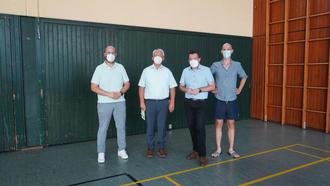 v.l.n.r.: 1. Beigeordneter Maik Licher, Bauunternehmer Günter Heitz, Bürgermeister Joshua Pawlak, Ortsvorsteher Rehlingen Sebastian Zimmer