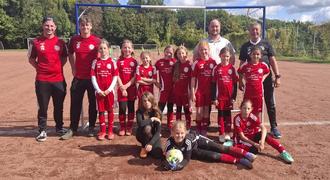E-Mädchen des SVE mit Jugendleiter Dominik Paulus und Vorstand