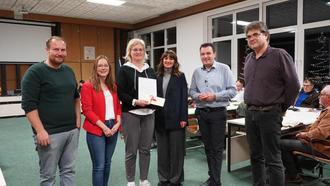 Fraktionsmitglied Rolf Klein (CDU), Fraktionsmitglied Christina Klasen (SPD), Tanja Weidig, Gemeindemitarbeiterin Ornella Gualtieri, Bürgermeister Joshua Pawlak, Fraktionsmitglied Alexander Lill (Bündnis 90/die Grünen).