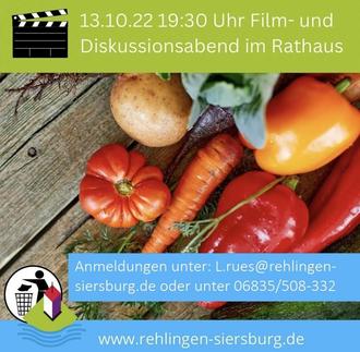 Anlässlich der Aktionswoche „Deutschland rettet Lebensmittel“, findet am Donnerstag, dem 13.10.2022 um 19.30 Uhr ein Film- und Diskussionsabend gegen Lebensmittelverschwendung im Rathaus statt. Auf Grundlage des Films „Frisch auf den Müll“ wollen wir die Probleme der Lebensmittelverschwendung verdeutlichen und gemeinsam Lösungsansätze aufzeigen, was wir alle in den eigenen 4 Wänden gegen Lebensmittelverschwendung tun können.