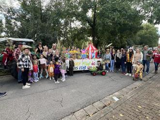 Auch in diesem Jahr beteiligten wir uns wieder mit einem Wagen und einer Fußgruppe am Erntedankumzug unter dem Motto „Der Bauer pflügt das Feld, der Zirkus zeigt uns die Welt“.