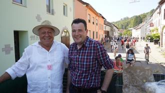 Ortsvorsteher Dietmar Zenner und Bürgermeister Joshua Pawlak beim Erntedankumzug in Hemmersdorf.