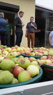 Nun möchte ich noch auf die Apfelernte in Niedaltdorf eingehen, bei der wir den Besuch des Umweltministeriums und Vertreter aus dem Landtag begrüßen durften. Das Kelterhaus des Obst- und Gartenbauvereins Niedaltdorf e.V., das als "Viezdomizil" bekannt ist, besteht bereits seit 1960 und ist das Herz des Vereins. Um den Betrieb aufrechtzuerhalten und unsere regionalen Produkte zu fördern, investierte der Verein in eine neue Bandpresse, die vom Umweltministerium großzügig mit 7.500 Euro unterstützt wurde. Ministerin Petra Berg unterstrich die Bedeutung der Verwertung von heimischem Obst zu Säften, sowohl für den Erhalt des Streuobstbaus als auch für die Vermarktung regionaler Produkte. Der Obst- und Gartenbauverein Niedaltdorf e.V. spielt eine wichtige Rolle in unserer Dorfgemeinschaft und setzt sich aktiv für den Obst- und Gartenbau ein. Ihre Arbeit mit Baumpflanzungen zur Erhaltung der Kulturlandschaft trägt maßgeblich zur Aufrechterhaltung unserer dörflichen Identität bei. Ich möchte Ihnen allen meinen herzlichen Dank aussprechen, denn ohne Ihre Unterstützung und Begeisterung wäre dies nicht möglich gewesen.