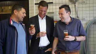 Ortsvorsteher Dietmar Zenner, Bürgermeister Joshua Pawlak und Beigeordneter Patrik Salzgeber bei der Eröffnung des St. Florianheims in Hemmersdorf.