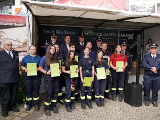 Im Rahmen des Jubiläumsfestes 100 Jahre Feuerwehr Eimersdorf erfolgte aus den verschiedenen Löschbezirken der Abteilung Jugendfeuerwehr die Übernahme zur Feuerwehranwärterin / Feuerwehrmann in den aktiven Dienst der Freiwilligen Feuerwehr.