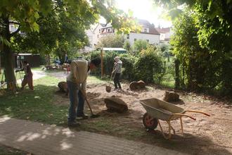 Am 08. Oktober 2022 widmeten sich unter Anleitung von Alexa Algier und Johanna Hurth vom Team des Kindergartens zahlreiche Familien voller Tatendrang der Aufgabe, das Außengelände des Kindergartens fit für die kalte Jahreszeit zu machen. Vom Abbau des Hühnerhauses über Aufräumarbeiten an Trampolin und Nestschaukel bis hin zum Streichen der im Frühjahr aufgebauten Hochbeete gab es viel zu tun. Außerdem wurden Heidelbeeren gepflanzt und Blumenzwiebeln fürs Frühjahr gesteckt.