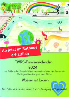 Aus dieser Aktion ist ein sehr schöner und persönlicher TWRS-Familienkalender 2024 entstanden, der ab jetzt im Rathaus der Gemeinde Rehlingen-Siersburg zum Preis von 10,00 Euro erworben werden kann. Mit dem Kauf des Kalenders erhält man nicht nur einen nützlichen und farbenfrohen Wandschmuck, sondern man unterstützt auch den Verein „Luca‘s Bewegung e.V.“