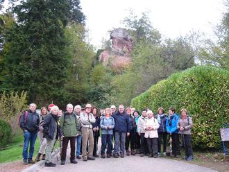 Unser Foto zeigt unsere Wandergruppe vor der faszinierenden Felsen-Kulisse von ‘Alt Windstein’.