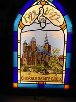 Anlässlich des 100. Jahrestages der Gründung des Kirchenchores St. Croix Bouzonville, wurde ein Miniaturfenster im Kirchenchor der Abteikirche Bouzonville angebracht.