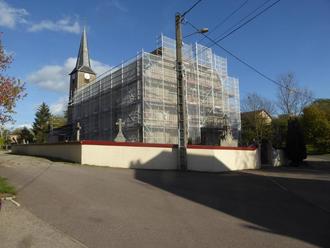 Die St. Anna Pfarrkirche von Neunkirchen-les-Bouzonville ist zur Zeit komplett eingerüstet, da sie einen neuen Außenputz erhält.