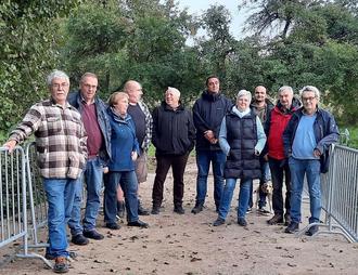 Die SPD-Fraktion auf der zurzeit gesperrten Brücke über den Remelbach. Die Brücke ist freigegeben für den Viehtrieb und für Fußgänger.