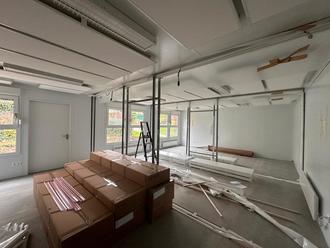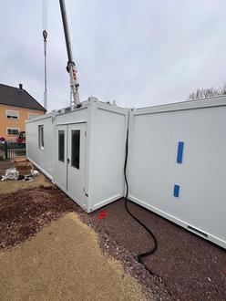 In der vergangenen Woche sind die Module für die Erweiterung des Kindergartens in Hemmersdorf eingetroffen. Im hinteren Teil des Kindergartens entstehen so zwei neue Gruppenräume, die vor allem während der Sanierung des Altbaus und der Errichtung des Neubaus als Gruppenräume genutzt werden. In den nächsten Wochen werden hier weitere Arbeiten durchgeführt, so dass die Einrichtung ab dem kommenden Jahr zur Verfügung stehen wird.