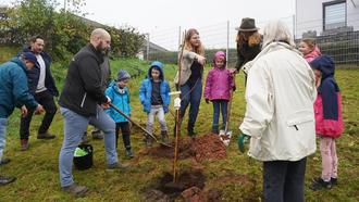 In der vergangenen Woche erlebte die Grundschule Siersburg ein bereits zur Tradition gewordenes Ereignis: die Erstklässler des Einschulungsjahrgangs 2023 pflanzten gemeinsam mit der Ministerin für Umwelt Petra Berg, dem 1. Beigeordneten Maik Licher zwei neue Apfelbäume auf dem Schulgelände.