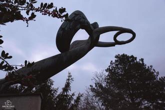 Die beeindruckende Kupferfigur des „Schwebenden Engels“ in Rehlingen.