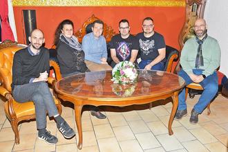 Ortsvorsteher Sebastian Zimmer, Iris Klasen, Bürgermeister Joshua Pawlak, Caféinhaber Pasqual Wagner, Alexander Wagner, 1. Beigeordneter Maik Licher.