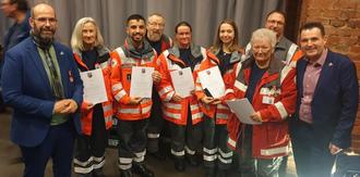 Am 26.11.2024 hatte das Innenministerium des Saarlandes zur Verleihung des Ehrenzeichens „Hochwasserhilfe Saarland 2024“ in den Lokschuppen nach Dillingen / Saar eingeladen. Dieser Einladung sind zahlreiche Einsatzkräfte von Polizei, Technisches Hilfswerk (THW), der Feuerwehren, der Notfallseelsorge, und natürlich aus des Deutschen Roten Kreuzes gefolgt.