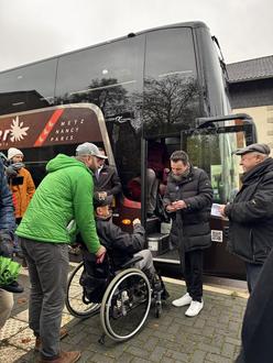 Bürgermeister Joshua Pawlak und Ortsvorsteher Dietmar Zenner empfangen den Veteranen Ceo Bauer in Hemmersdorf