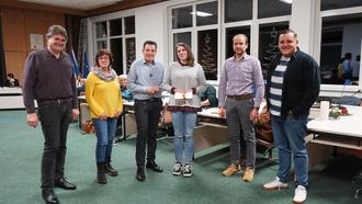 Fraktionsmitglied Alexander Lill (Bündnis 90/Die Grünen), Fraktionsmitglied Anja Düro (SPD), Bürgermeister Joshua Pawlak, Anna Maurer, Fraktionsmitglied Peter Gandner (CDU), Fraktionsmitglied Fabian Bies (CDU).