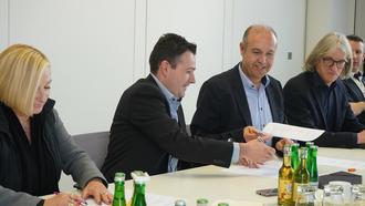 Bürgermeister Joshua Pawlak bei der Vertragsunterzeichnung mit der energis GmbH nachdem der Gemeinderat sich einstimmig für das Pilotprojekt ausgesprochen hat.