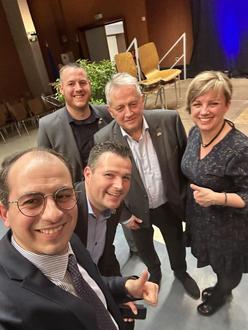 Bürgermeister von Bouzonville Armel Chabane, Bürgermeister Joshua Pawlak gemeinsam mit dem Beigeordneten Patrik Salzgeber, dem Beauftragten für deutsch-französische Partnerschaft Daniel Klasen und Estelle Bohr Abgeordnete des Departements Moselle.