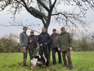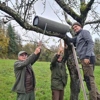 Die Jagdgenossen setzen sich ständig für lebenswerte und artenreiche Biotope in ihrem Revier ein. So wurden bereits in den letzten Jahren Nistkästen ausgebracht und jährlich gesäubert. Alle Nistkästen wurden angenommen. Nachdem man sich dieses Jahr im Frühsommer überaus erfolgreichen in der Kitzrettung mittels Drohne eingesetzt hatte, stand im Herbst ein neues Projekt im Fokus. Da es in unserem Revier zahlreiche Streuobstwiesen gibt, haben wir im November spezielle Steinkauzröhren ausgebracht, um diesem seltenen Eulenvogel geeignete Nistmöglichkeiten zu bieten. Nach der Auswahl geeigneter Bäume wurden die mardersicheren Nisthöhlen montiert. Jetzt hoffen, wir dass die Röhren angenommen werden.