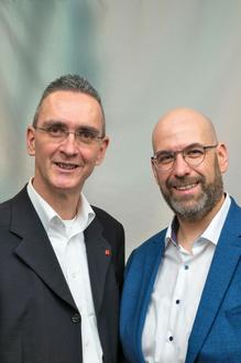 Dr. Michael Altmayer und Maik Licher laden bei Gebäck, Kaffee und Glühwein zum "Sprochen“ ein.