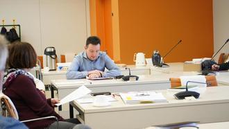 Bürgermeister Joshua Pawlak begrüßt die Vertreter*innen der Kommunen aus dem Landkreis Saarlouis im großen Sitzungssaal im Rathaus.