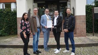 Hauptamtsleiterin Sabrina DiGregorio, Ortsvorsteher Siersburg Dr. Michael Altmayer, Innenminister Reinhold Jost, Bürgermeister Joshua Pawlak, stellv. Bauamtsleiter Jan Moinot.
