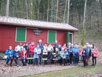Mit mehr als 30 Wanderfreunden/innen haben wir am Donnerstag nach Aschermittwoch eine schöne Wanderung durch die Wälder von Hoesberg und Limberg unternommen. Eine kleine Pause legten wir ein zu einer Schnapsprobe an der Saarwald Hütte ’In den Strichen’ (unser Foto).