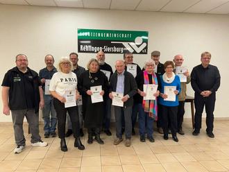 v.l.n.r: 1. Vorsitzender Carsten Bachmeyer, Bernhard Braun, Kuni Kutrieb, Thomas Jung, Petra Stratmann, Detlef Monter, Herbert Altmayer, Herbert Weirich, Selma Stratmann, Udo Horf, Katharina Meguin, Edwin Kiefer und 2. Vorsitzender Ulrich Bruch