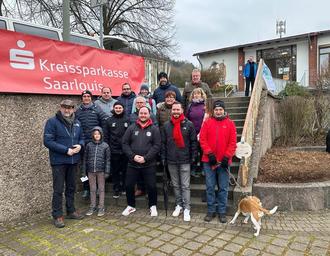 Schirmherr Minister Reinhold Jost (links) mit Wandergruppe seiner Partei und Vorstandsmitgliedern des SVE