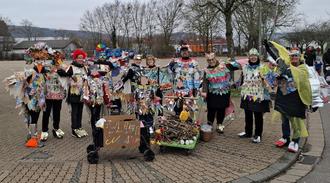 Selbst gebastelte Kostüme aus Plastikmüll verzauberten die kreative Gruppe in Paradiesvögel. Durch Wurfmaterial, das kaum Abfall produziert, wurde gezeigt, dass Faasend auch nachhaltig jede Menge Spaß machen kann. Vielen Dank an Familie Zenner vom Marienhof in Gerlfangen und Marco Wagner vom Rewe Siersburg, für die Obst- und Nussspenden, die bei den Jecken am Straßenrand ebenso gut ankamen, wie die Taschenaschenbecher und über 1000 Blumensamentüten, die liebevoll selbst gefüllt, beschriftet und gefaltet wurden.