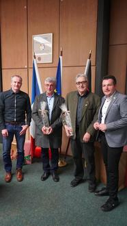 Im Namen der Verwaltung gratulierten Bürgermeister Joshua Pawlak (r) und Volker Dibbern (Leiter Fachbereich 3, in dem das Thema Umwelt angesiedelt ist) Herrn Jungmann und Herrn Forse