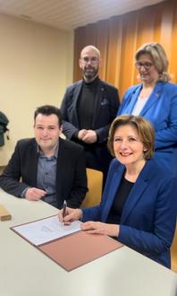 Ministerpräsidentin Malu Dreyer (Rheinland-Pfalz) neben Bürgermeister Joshua Pawlak. Im Hintergrund ist Ministerpräsidentin Anke Rehlinger (Saarland) und der 1. Beigeordnete der Gemeinde Maik Licher