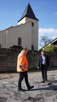 Ortstermin in Siersburg mit Florian Apitz (Tiefbauamt) und Bürgermeister Joshua Pawlak um die weiteren Schritte zur Sanierung der Fahrbahn zu besprechen.