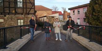 Nach einer Bauzeit von rund 1,2 Jahren wurde am 12.12.2025 die Brücke über den Mühlgraben an der Grundschule Wickerstedt vom Bauunternehmer Hr. Bergmann (GF) Ingenieurbau Bergmann Gmbh, Erfurt, der Ortschaftsbürgermeisterin Frau Büttner, dem Bürgermeister Dirk Schütze, und dem Ingenieurbüro vertreten durch Herrn Schultz (GF) eingeweiht und für den Verkehr freigegeben.