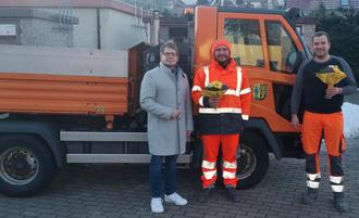 von links: Bürgermeister Dirk Schütze, Lukas Agatha, Sebastian Weckesser