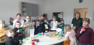 Die Kinder erfuhren von ihr viel über eine gesunde Ernährung, was man mit verschiedenen Milchprodukten herstellen kann und wurden angehalten verschiedene Küchenutensilien zu nutzen. So entstanden Kräuterquark, Dip, Kräuterbutter und Fruchtmilch. Das Mittagessen wurde von allen selber zubereitet - Pellkartoffeln und Kräuterquark.