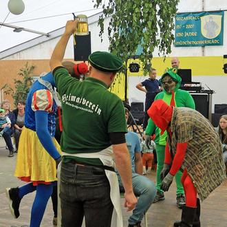 ... heißt es in einem bekannten Kinderlied. Zu Pfingsten gehen hier in Münchengosserstädt gleich mehrere Butzemänner ihrer Arbeit nach - jedes Jahr in anderer Kostümierung. Sie wollen nicht erkannt werden bei ihrer schweißtreibenden Tätigkeit, denn sie vollziehen so den Akt der Aufnahme Heranwachsender im Konfirmations- bzw. Jugendweihealter und neu zugezogener Bürger in den Kreis der Münchengosserstädter. Die vollzogene "Rasur" ist ein wichtiges Ereignis: "Ja, auch ich wurde rasiert" - das zählt schon was und zeugt auch vom Respekt der Gemeinschaft für den Einzelnen. Die Rasur, einbettet in den Sonntagskindertanz, ist der Höhepunkt des dreitägigen Pfingstfestes und für die Akteure und die Kandidaten gewiss kein Spaziergang. Sie werden "spontan eingefangen" - keiner weiß wer wann dran ist - und setzen dem einen (angemessenen) Widerstand entgegen. So werden sie auf einem Stuhl gefesselt und nach ordentlichem Einseifen/Schminken mit einem altehrwürdigen überdimensionierten Holz-Rasiermesser letztlich rasiert. Mit einem Tusch durch den Burschenkellner und dem Hochheben in die Meie gilt die Rasur als beendet - die Zuschauer spenden Applaus. Die so frisch Rasierten gehen danach in der Regel Duschen und wechseln die Kleider - der neue Lebensabschnitt beginnt nun symbolisch.